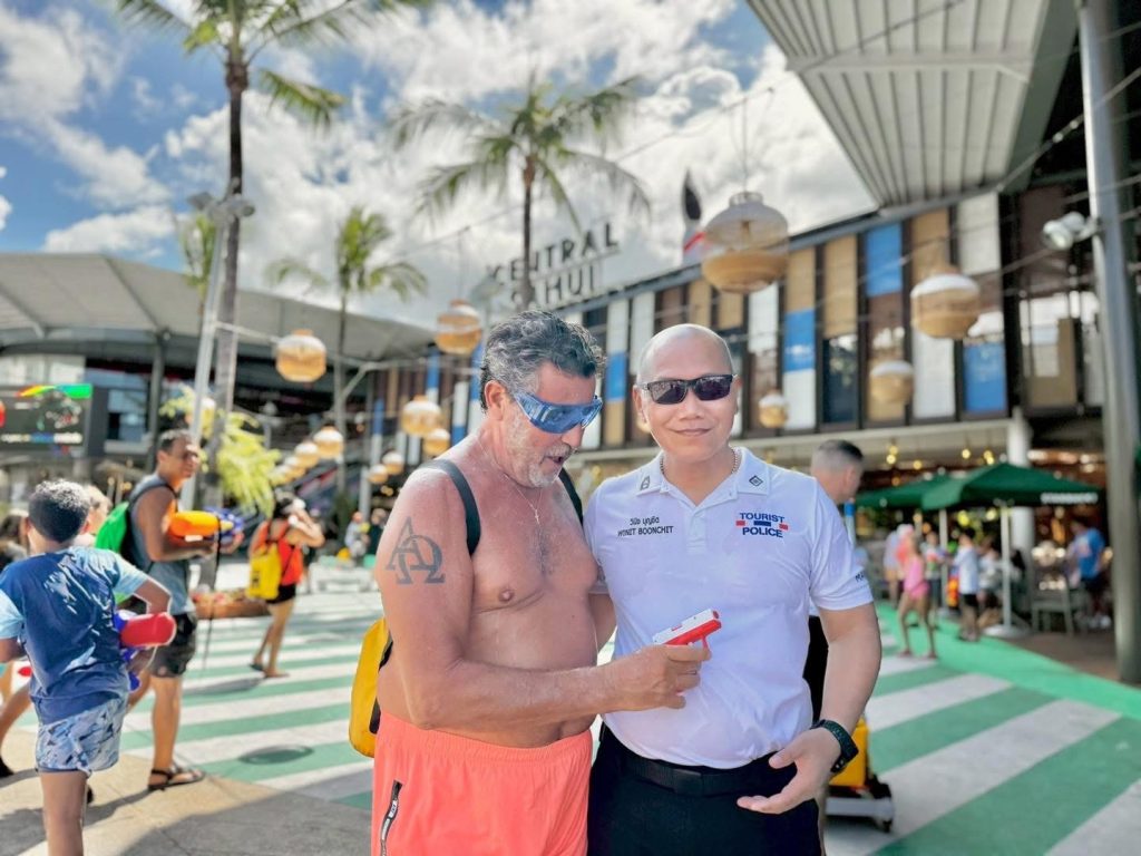 พ.ต.ท.วินิจ บุญชิต สว.ส.ทท.5 กก.2 บก.ทท.3 พร้อมด้วยข้าราชการตำรวจสังกัด ส.ทท.5 กก.2 บก.ทท.3 ว.4 ปรากฎกายดูแลความปลอดภัยแก่นักท่องเที่ยวและผู้ประกอบการ สร้างความเชื่อมั่นในด้านความปลอดภัย พร้อมทั้งประชาสัมพันธ์ 1155 ณ บริเวณจุดเล่นน้ำสงกรานต์ เซนทรัลเฟสติวัล เกาะสมุย